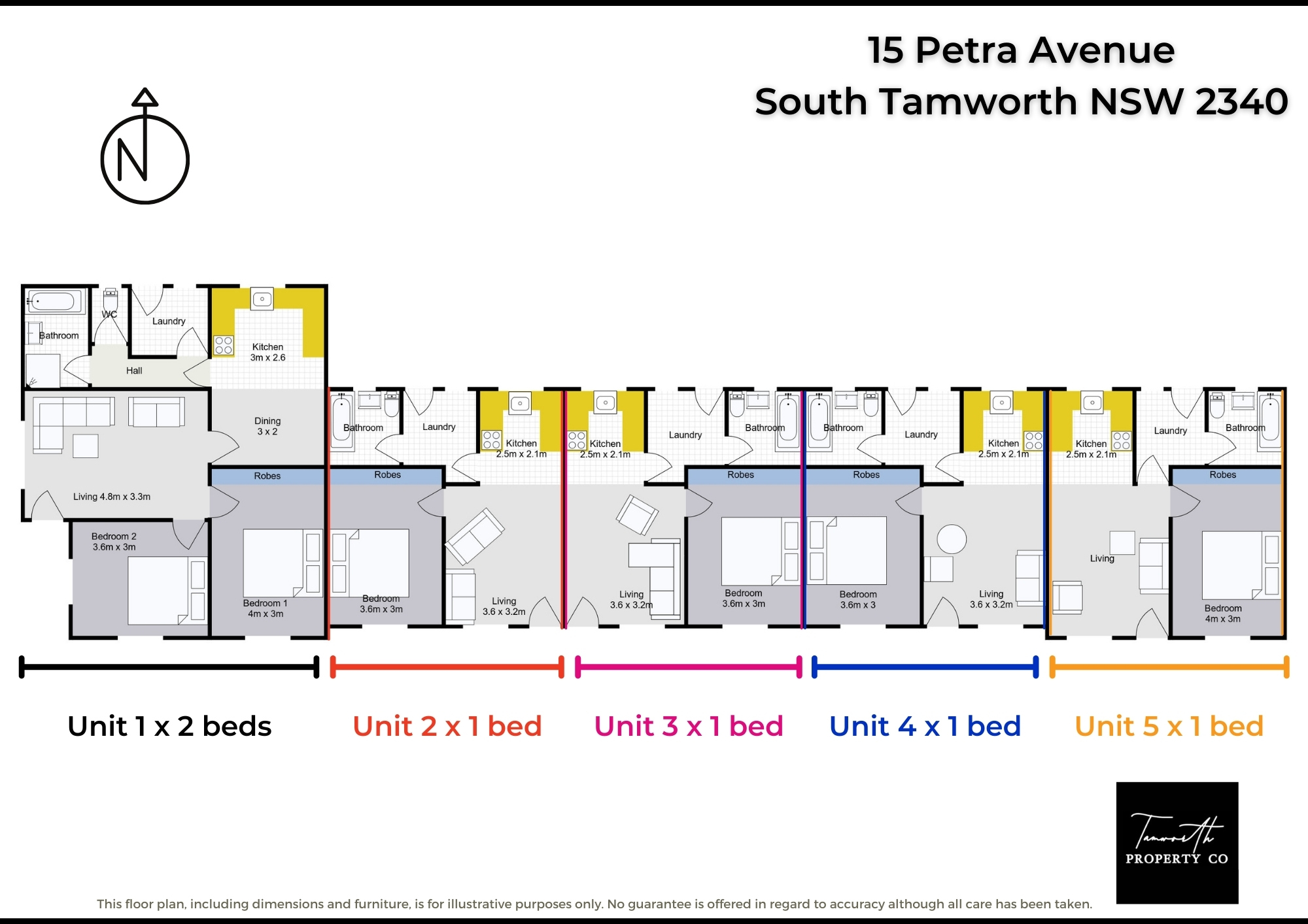 SOUTH TAMWORTH - 5-unit complex ideally situated near public schools, Southgate shopping centre, West League club and parks. Construction is brick with tiled roof and currently achieving gross weekly rental of $1,000pw.