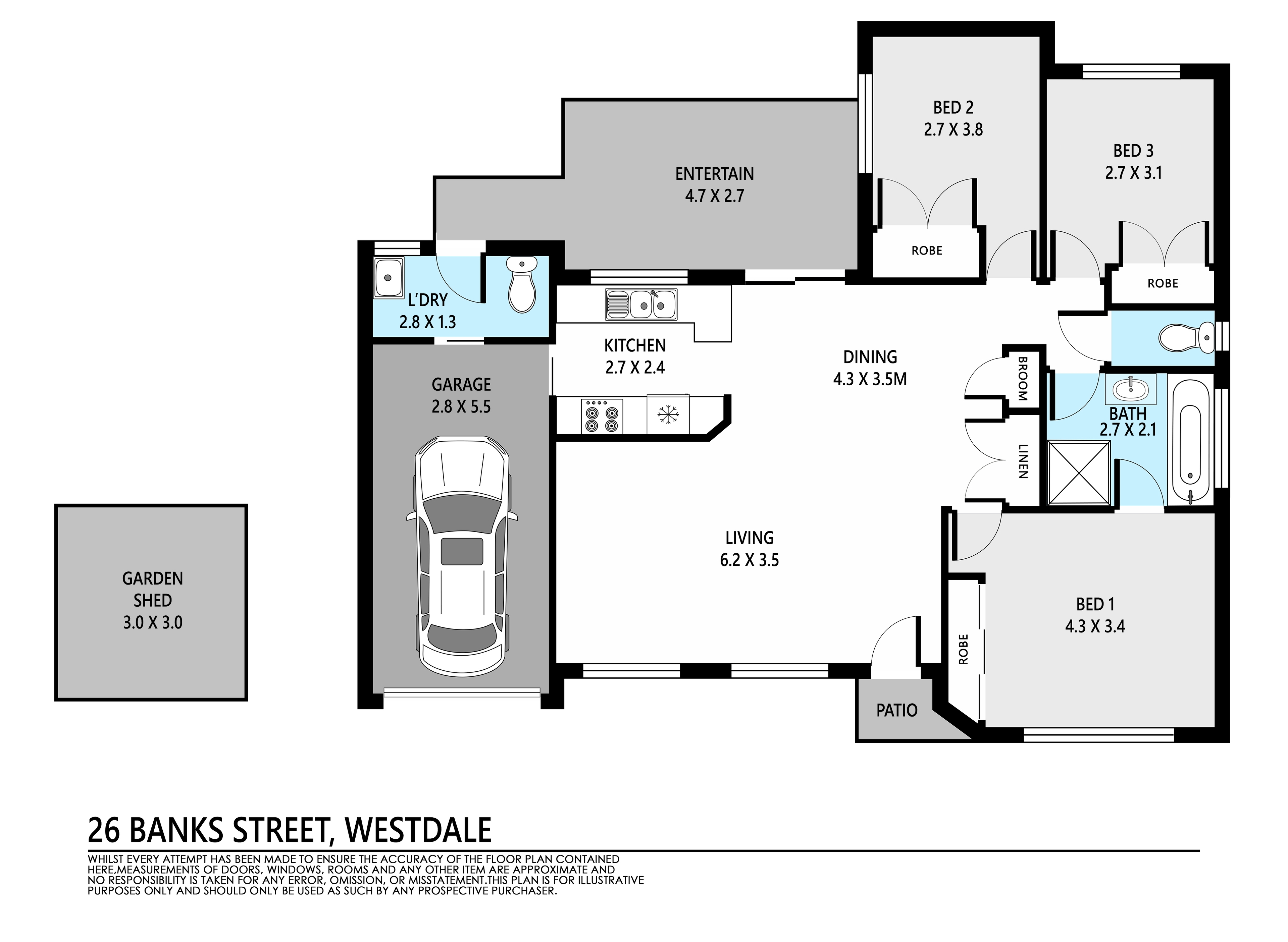* 3 Bedrooms, 1 Bathroom, Single lock up garage