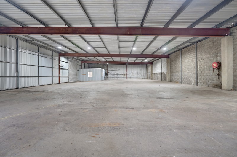 High clearance shed designed for warehousing, fabrication, or trade services