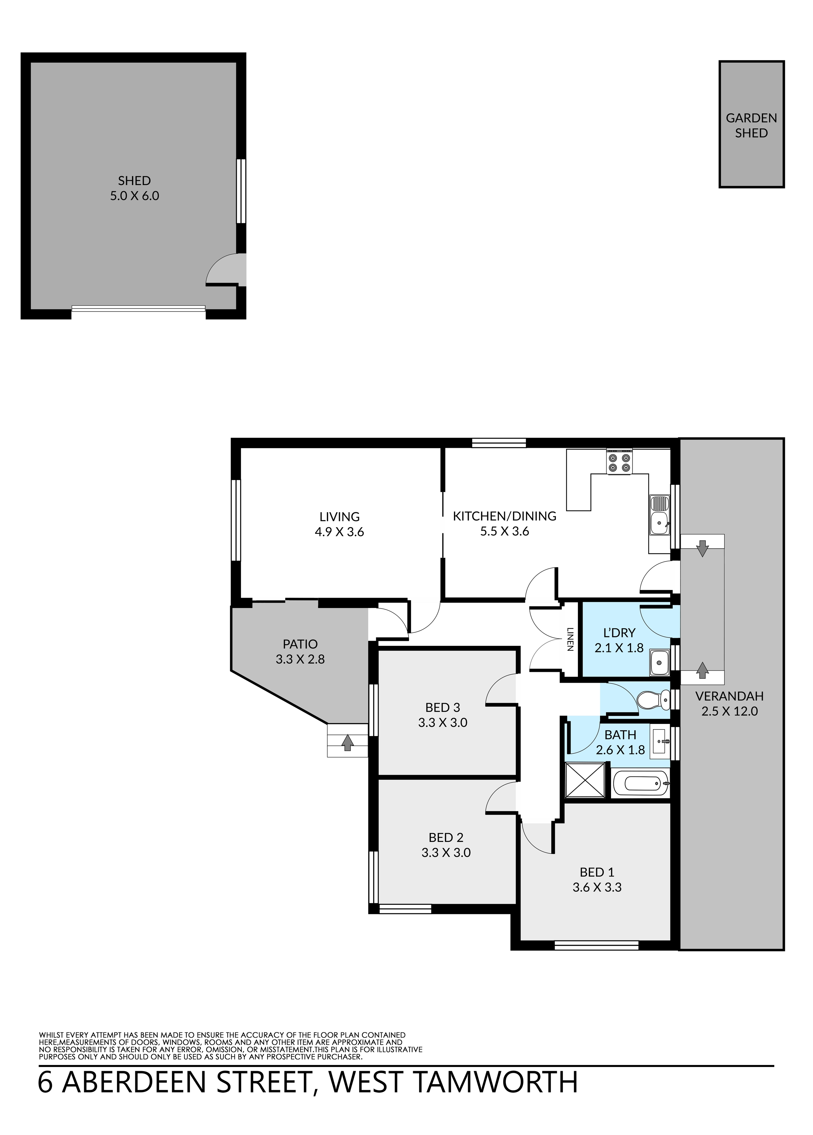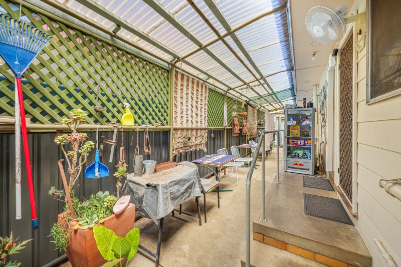Offering front patio, bathroom with bath, separate toilet, open plan living areas, kitchen with upright stove, reverse-cycle air-conditioning, covered outdoor area, powered shed with wide gate access into backyard.