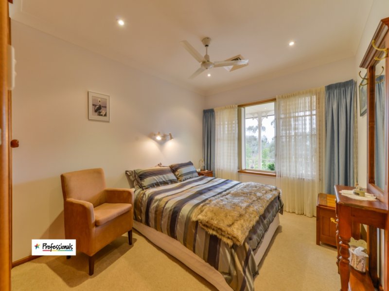 THE HOME... Is updated throughout. Relaxing on the front verandah of this property you can experience the magnificent views and north/east aspect, truly appreciating the beauty of this area. The modern kitchen has quality appointments, a gas cooktop, Miele appliances and opens onto an eating area. This area leads to the lounge which features built-in cupboards. French doors open to large paved and vine covered pergola area. The upstairs bedrooms are all generous in size and 3 have built-ins. The main bathroom has been recently renovated and has separate toilet. The laundry has ample cupboards and ceiling access by a fold down ladder. Downstairs you will find a 5th bedroom and cellar or storage room. There is a 2nd bathroom and utility room within the 3 car remote garage. The house is kept comfortable throughout the seasons with a 4 zone ducted reverse cycle air conditioner, an evaporative air conditioner, gas heating plus a wood fire which also boosts the solar, electric hot water system. All this set amid established trees and gardens.