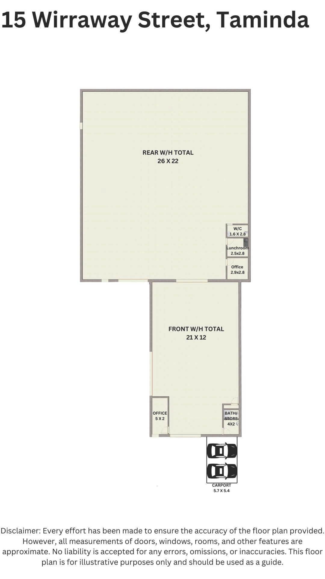 * Rear warehouse 26x22m(approx.) with 5.1m high electric roller door