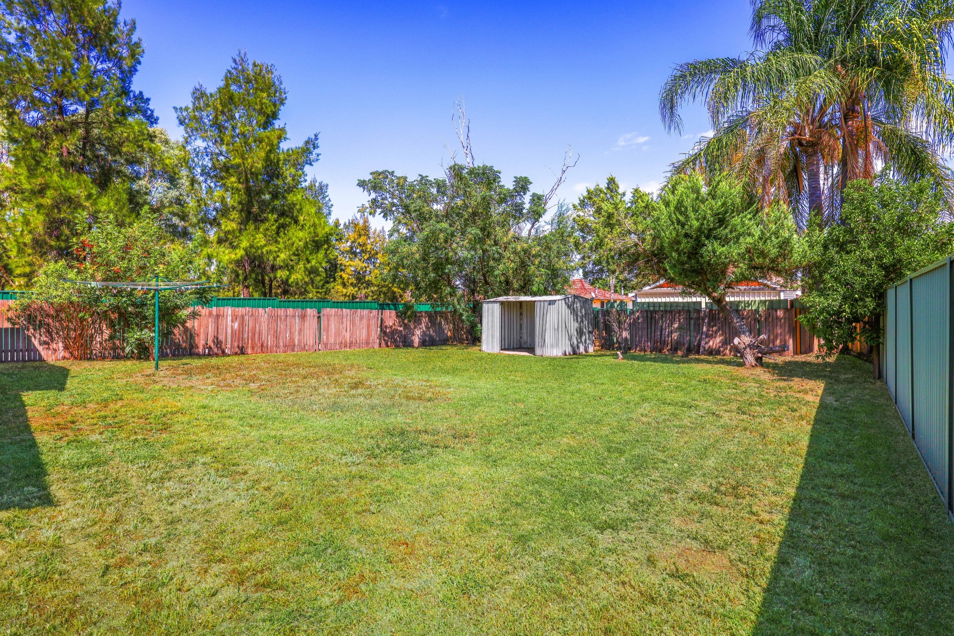 * Covered outdoor area overlooking backyard with garden shed