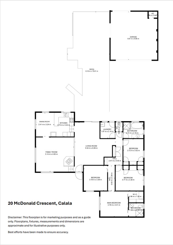 * Main bedroom with ensuite, split system & ceiling fan