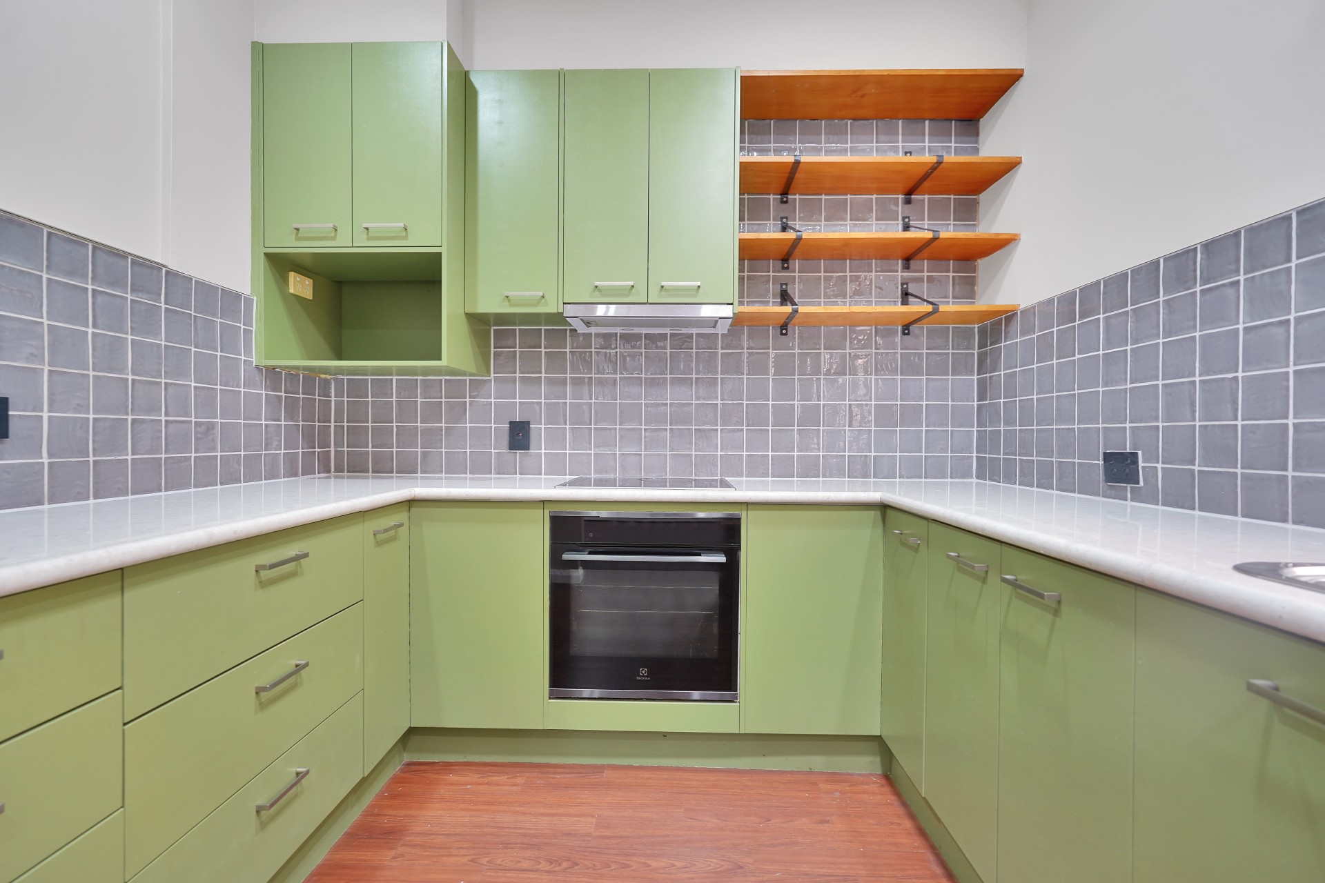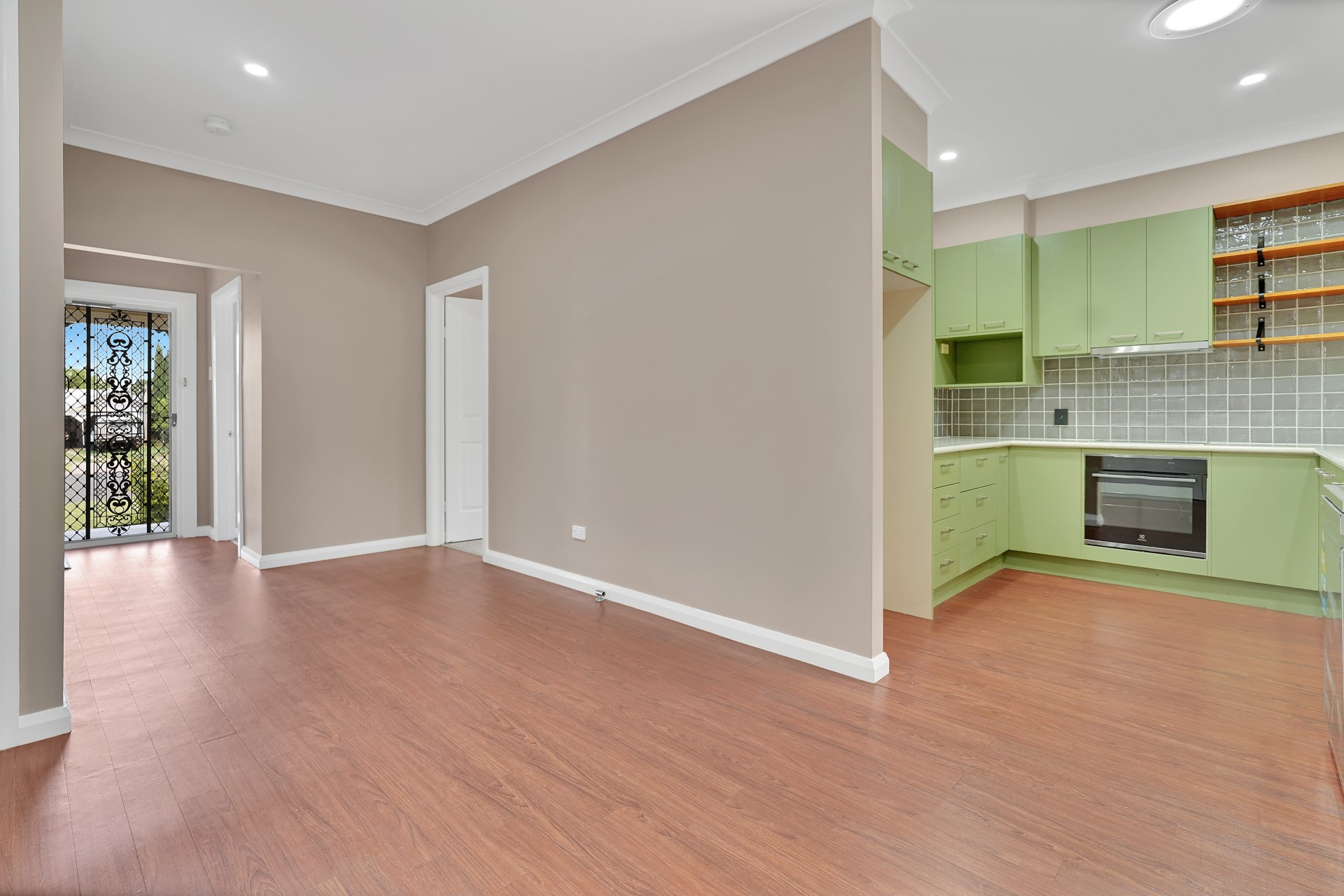 The kitchen is full of character with ample storage, open shelving, a servery window and generous bench space, flowing easily to the dining and living zones.