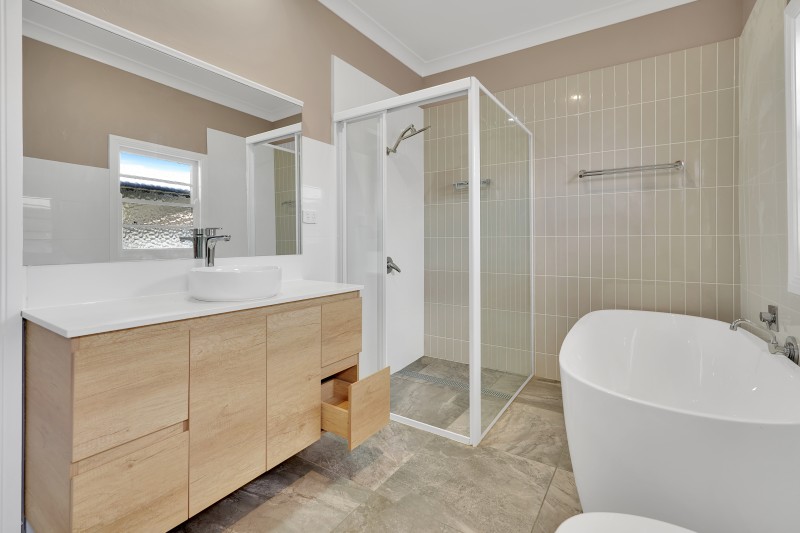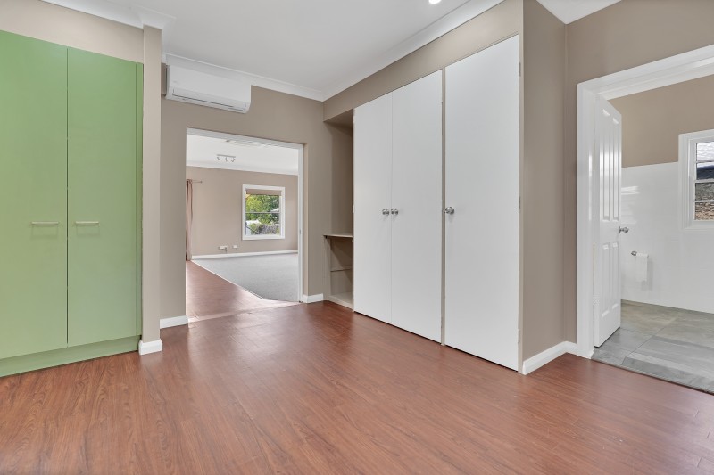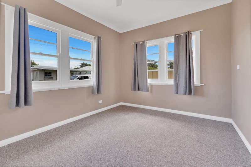 The updated bathroom is a standout, featuring a freestanding bath, standalone shower, modern vanity and stylish tiled finishes, while accommodation includes three generous bedrooms, with the main offering a charming window bench, air conditioning and ceiling fan.