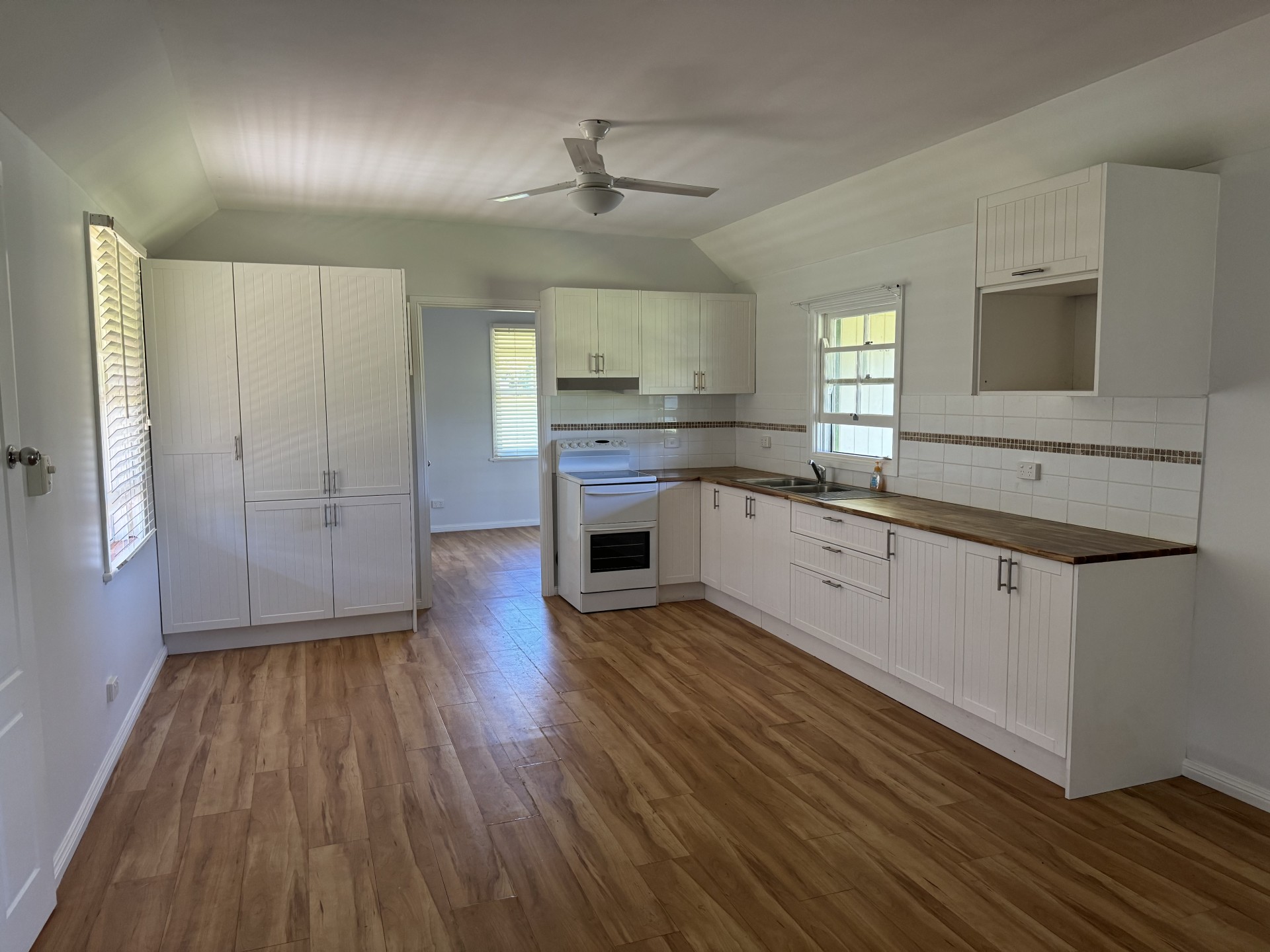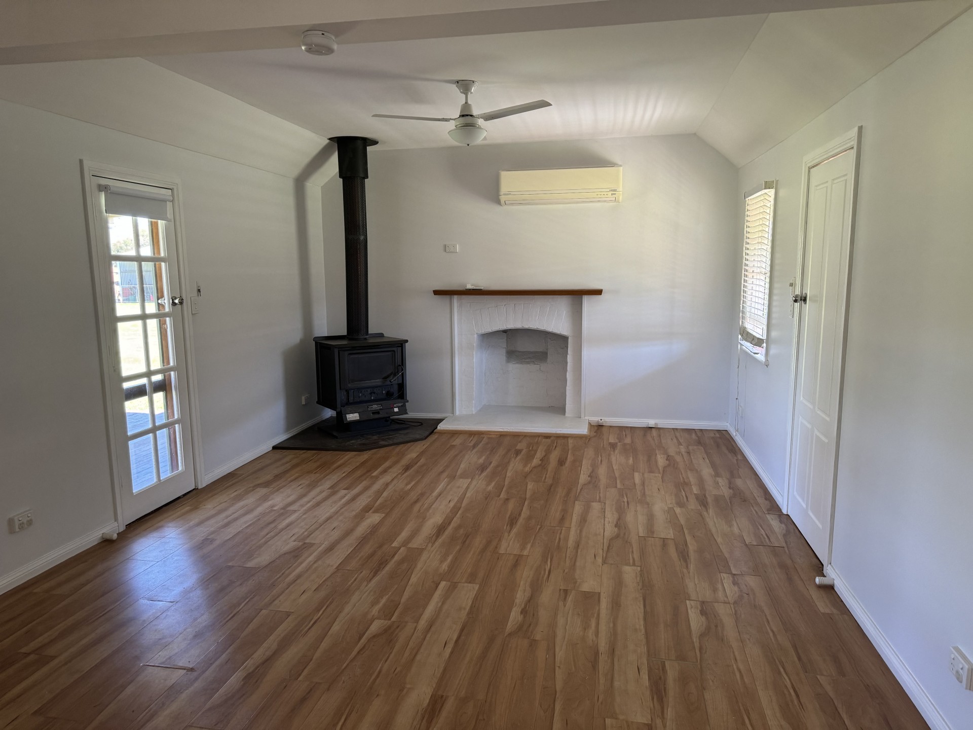 * Open plan living & kitchen area with woodfire + split system