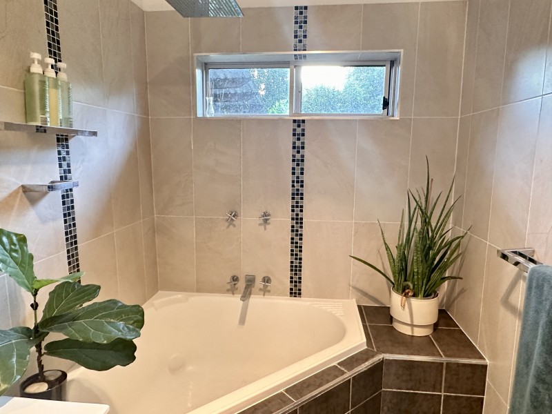 * Stylish bathroom with large shower bath
